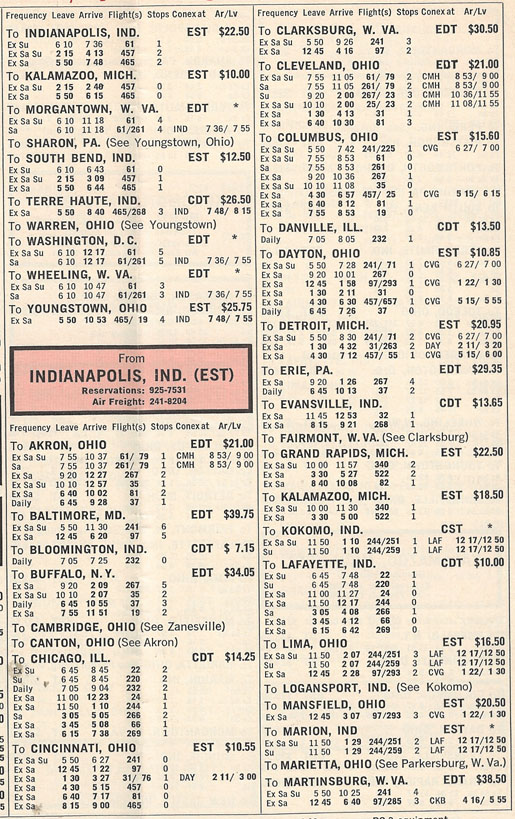 Lake Central August 1, 1966 timetable.  200-series flight operated by Nord 262's.